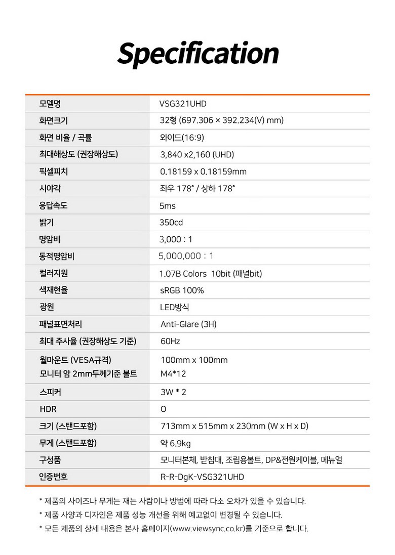 | 품명 및 모델명 | 모니터 / 뷰싱크 이트로이 VSG321UHD | KC 인증정보 | 상품 상세페이지 참조 |