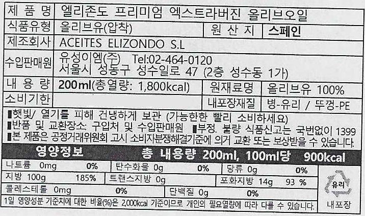 - 종류: 올리브유
