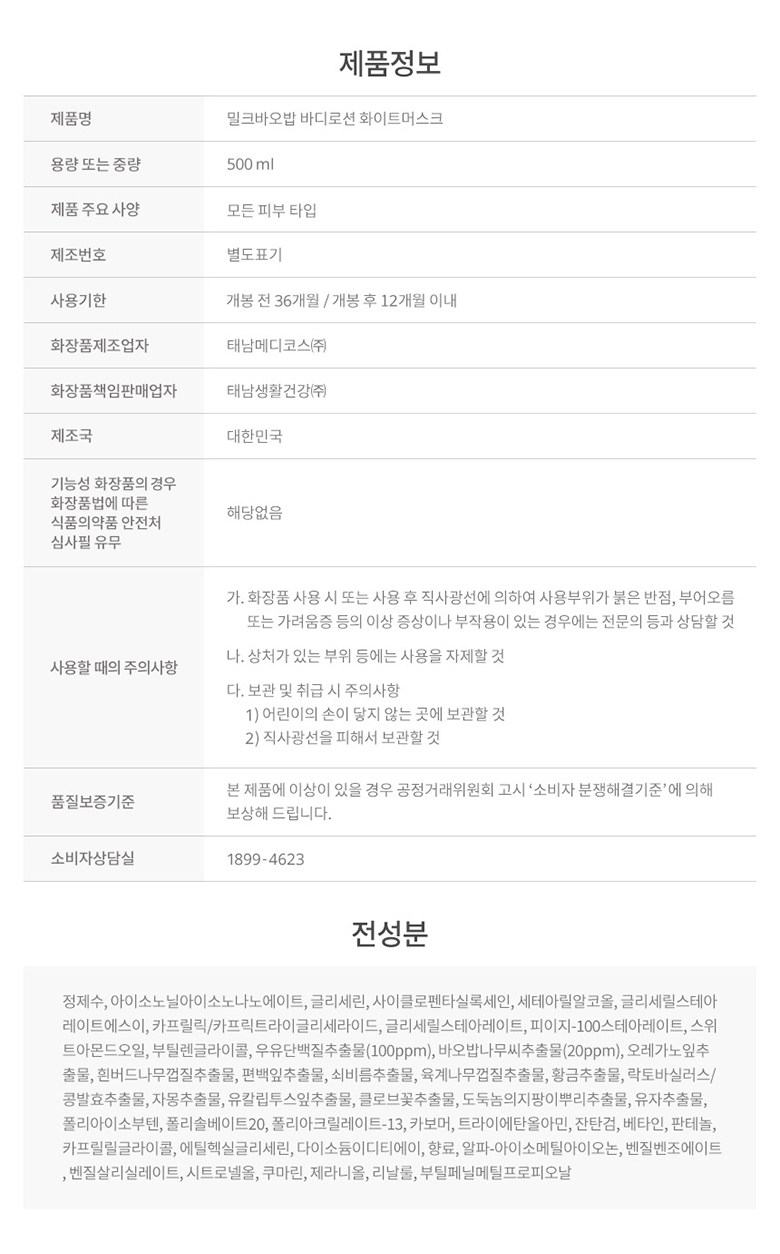 | 사용기한 또는 개봉 후 사용기간 | 본 상품은 해당 물류센터 직발송 상품인 관계로 제조연월일 및 사용기한 정보가 매번 변경되므로 상단 사용기한 정보를 참고해 주세요. | 사용방법 | 적당량을 덜어 전신에 마사지하듯 부드럽게 펴 발라 흡수시켜 줍니다. |