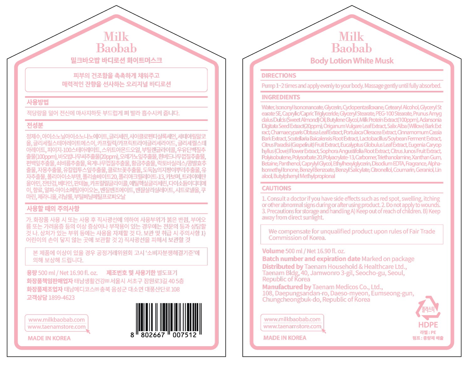 | 화장품제조업자, 화장품책임판매업자 및 맞춤형화장품판매업자 | 컨텐츠 참조 | 제조국 | 대한민국 |