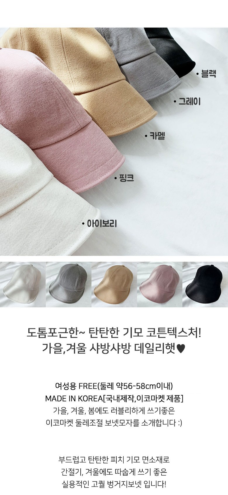 - 모자 종류: 벙거지/버킷햇