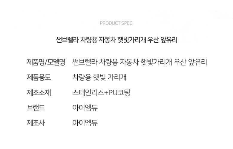 | 품명 및 모델명 | 썬브렐라 차량용 자동차 햇빛가리개 우산 앞유리 | 동일모델 출시년월 | 2020년 12월 |