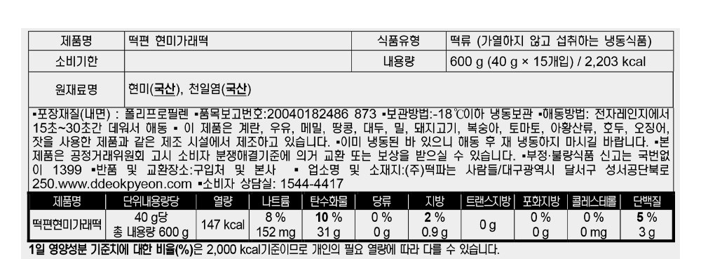 | 제품명 | 떡편현미가래떡 | 식품의 유형 | 컨텐츠 참조 |