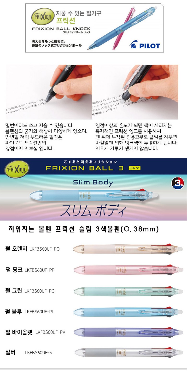 | 품명 및 모델명 | 프릭션 슬림3볼 0.38 LKFBS60UF | 인증/허가 사항 | 해당없음(14세 이상) |