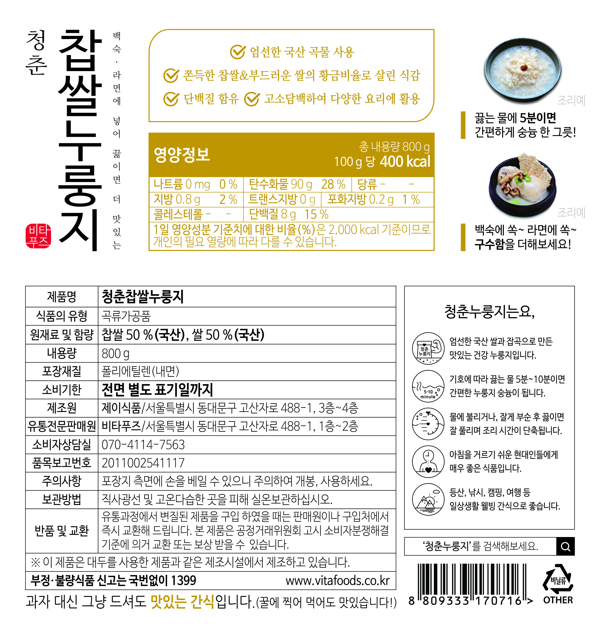| 포장단위별 내용물의 용량(중량), 수량 | 800g x 2개 | 원재료명 및 함량 | 컨텐츠 참조 |