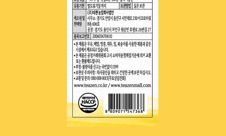 | 제품명 | 상품 상세페이지 참조 | 식품의 유형 | 상품 상세페이지 참조 |