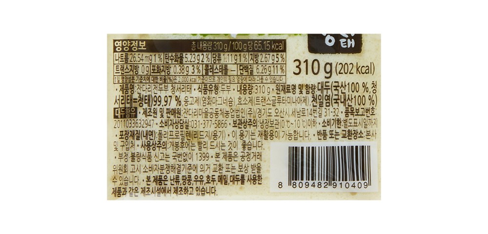 | 제품명 | 잔다리 전두부 청서리태 | 식품의 유형 | 컨텐츠참조 |