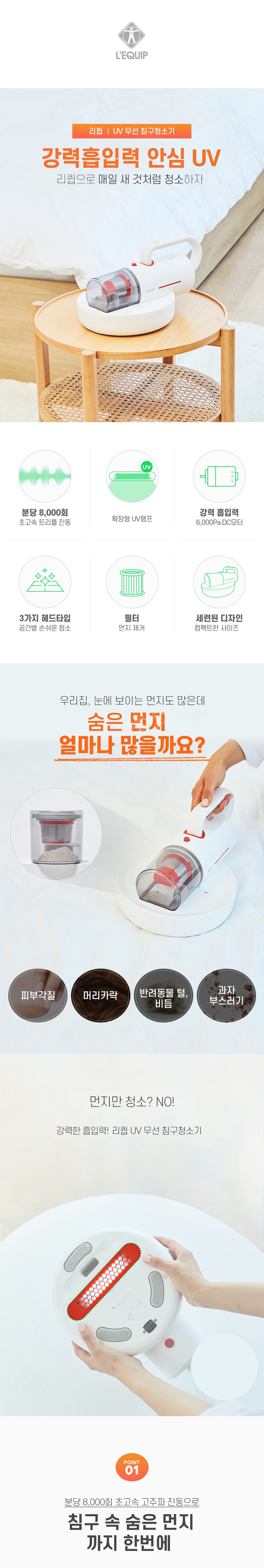 리큅 2 in 1 핸디 앤 진공 UV 무선 침구청소기 LCL-WB602 WH