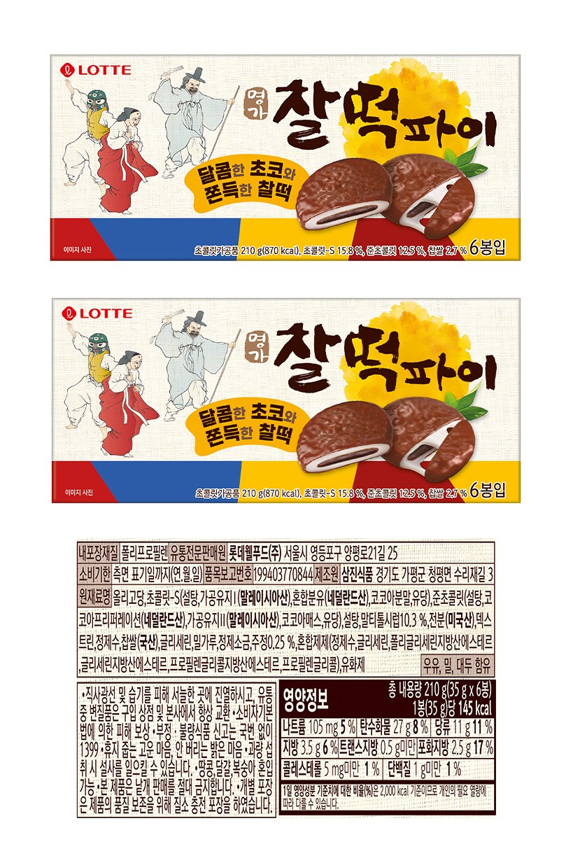 | 제품명 | 명가 찰떡파이 | 식품의 유형 | 초콜릿가공품 |