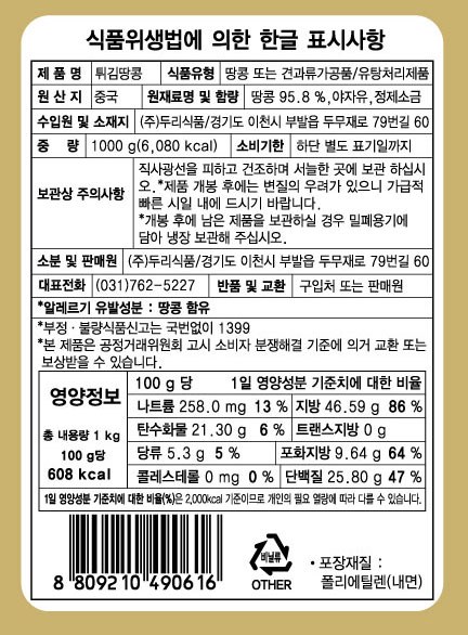 - 견과 종류: 땅콩