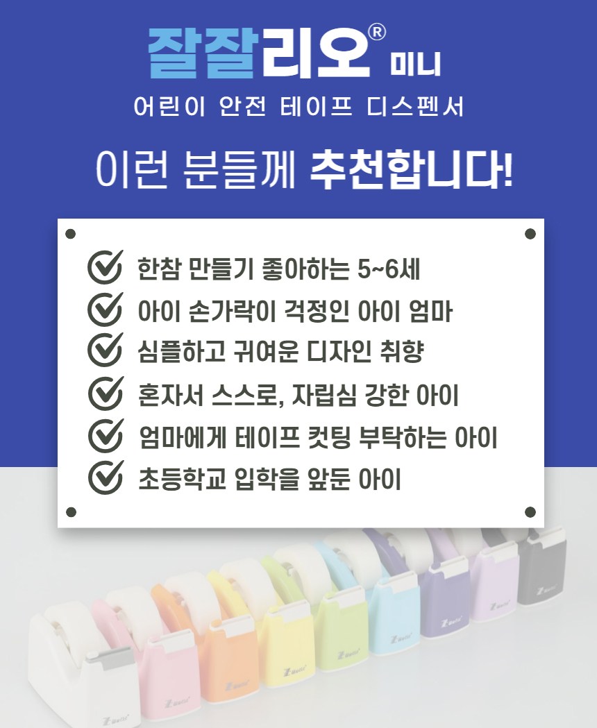 | 품명 및 모델명 | 잘잘리오 미니 자동 안전 어린이 테이프 디스펜서 레인보우 | KC 인증정보 | 유/KC마크 |