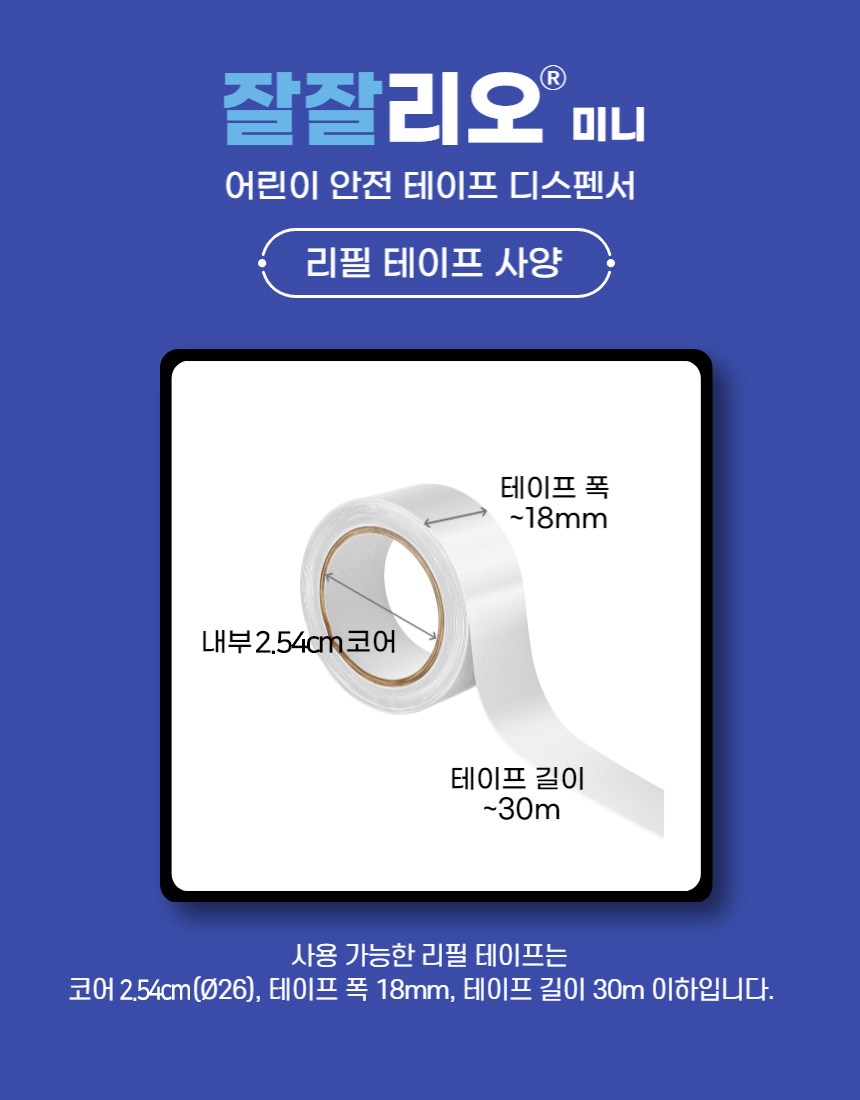 ※ 해당 디스펜서에 사용 가능한 테이프의 사이즈(폭)는