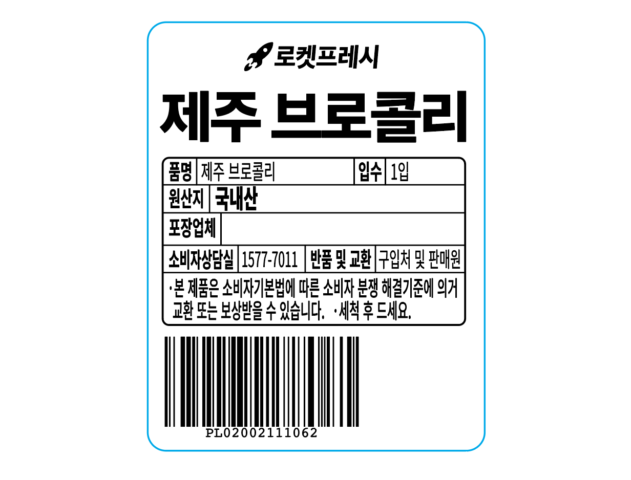 | 품목 또는 명칭 | 제주 브로콜리 | 포장단위별 내용물의 용량(중량),수량,크기 | 1개입(250g) |