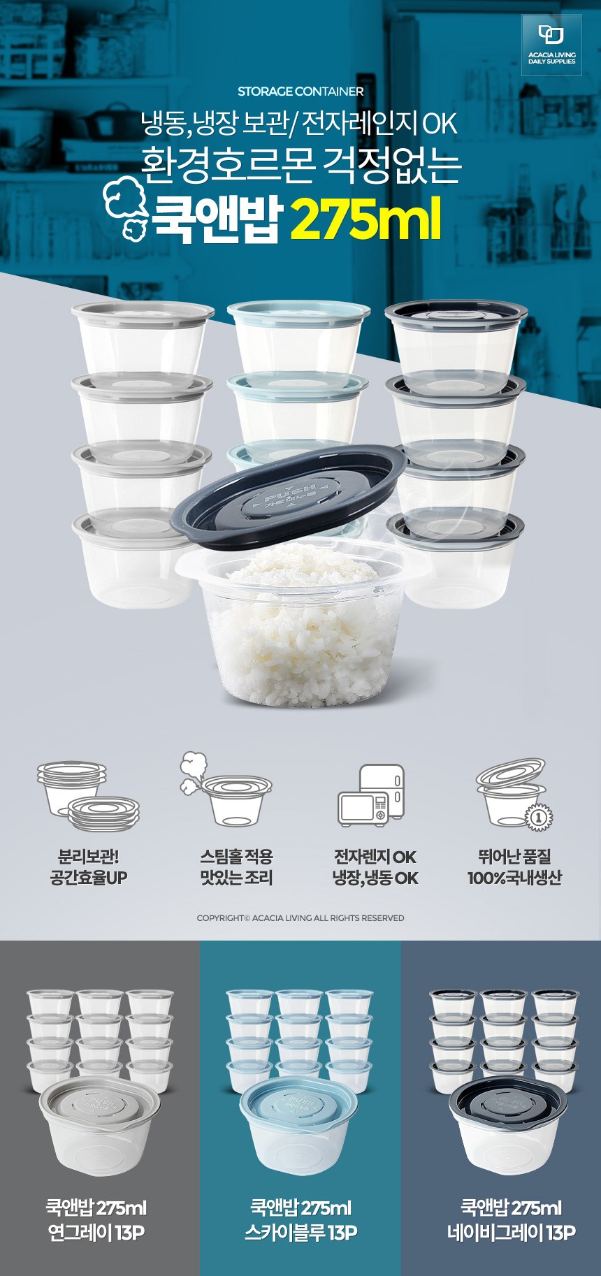 | 품명 및 모델명 | 전자렌지용 냉동밥보관 쿡앤밥 밀폐용기 스카이블루 275ml | 재질 | 컨텐츠참조 |