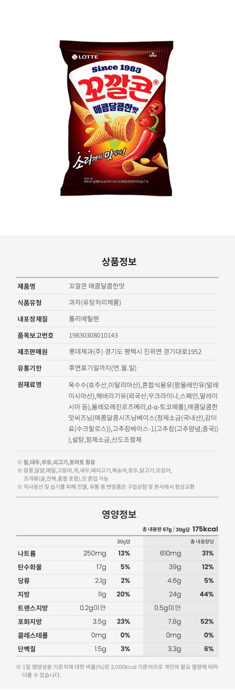 | 제품명 | 상품 상세페이지 참조 | 식품의 유형 | 상품 상세페이지 참조 |