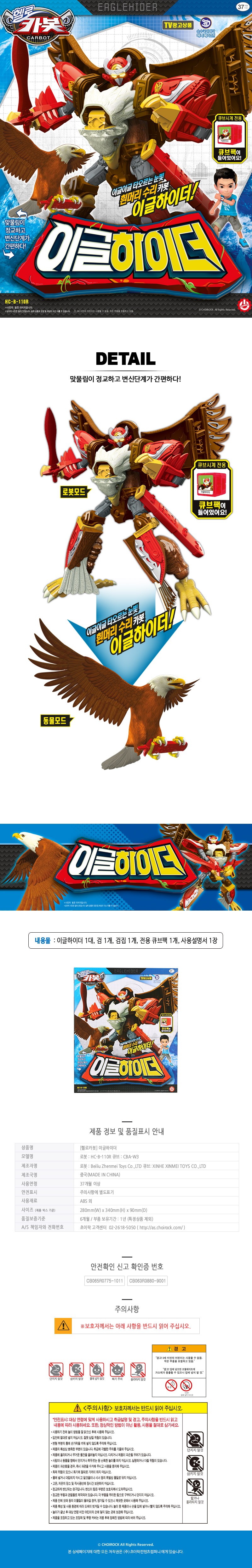 | 품명 및 모델명 | 헬로카봇 이글하이더 로봇장난감 | KC 인증정보 | 로봇 : CB065R0775-1011 ㅣ 큐브 : CB063R3880-9001 |