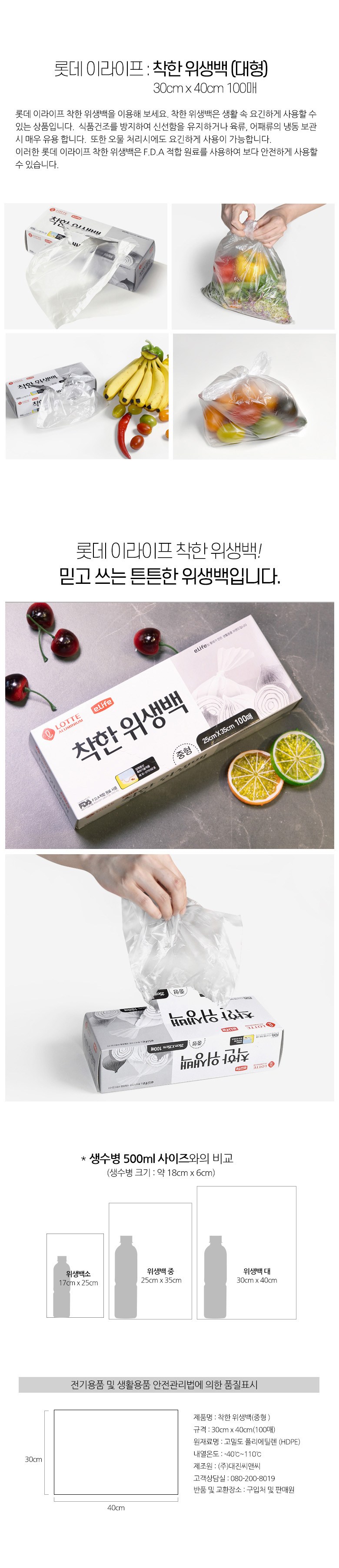 | 품명 및 모델명 | 롯데 착한 위생팩 | 재질 | 고밀도 폴리에틸렌(HDPE) |
