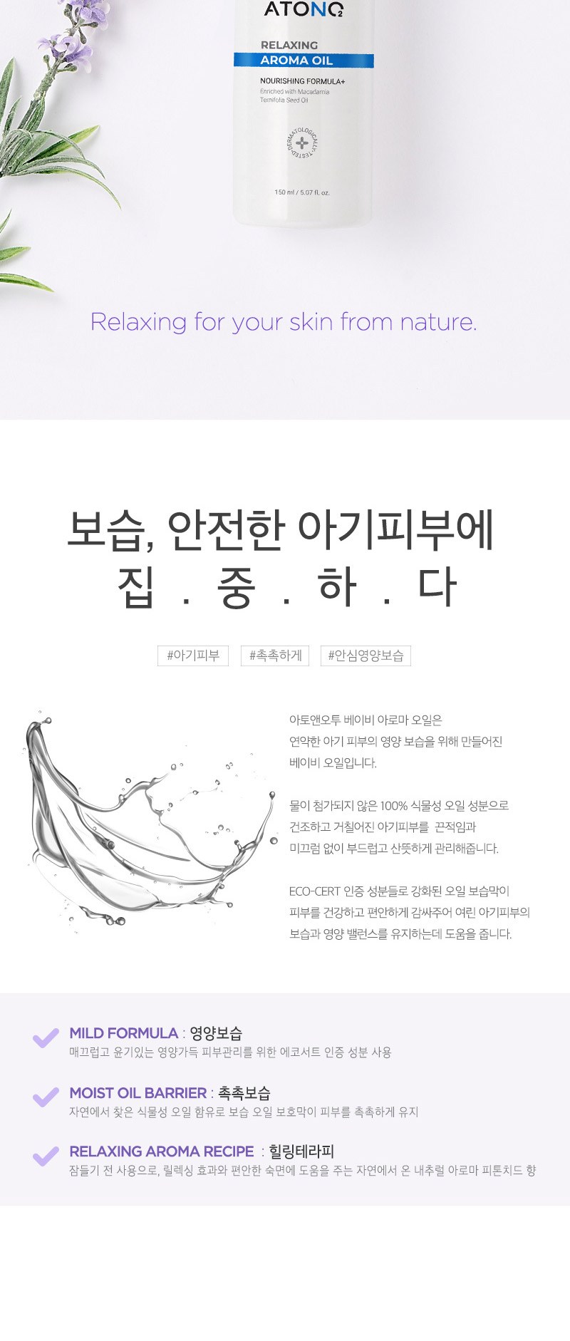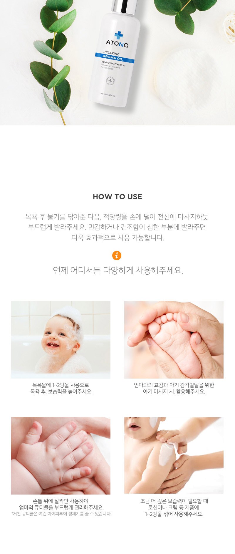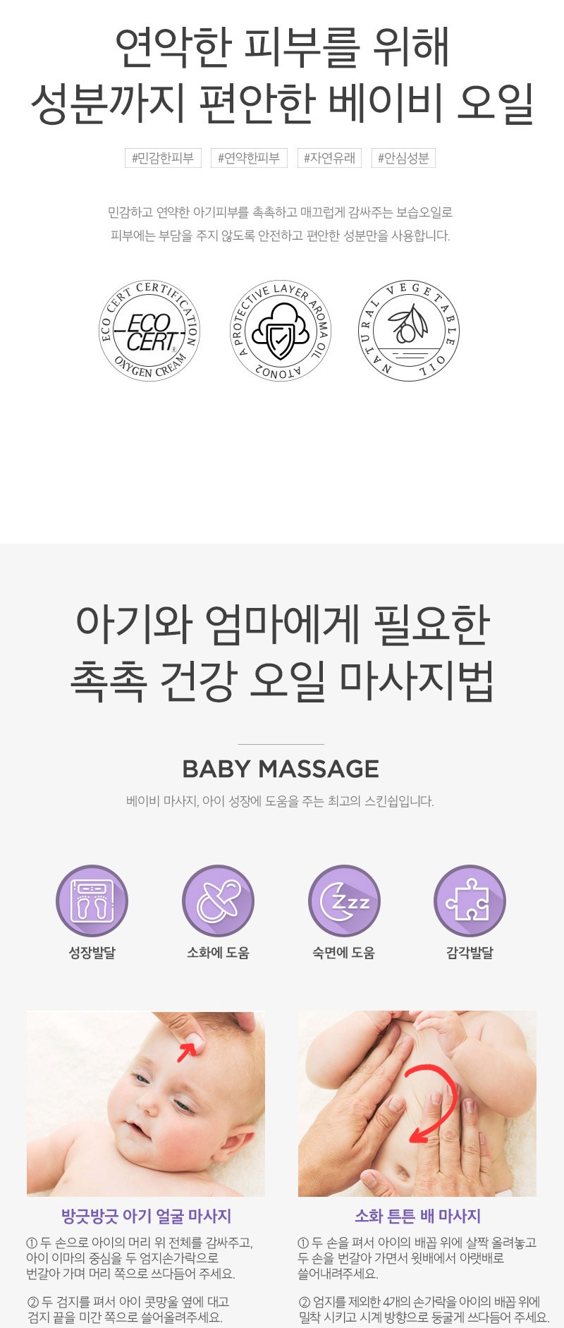 - 보습력이 좋아 아이 피부를 촉촉하게 만들어 주는 아로마 오일