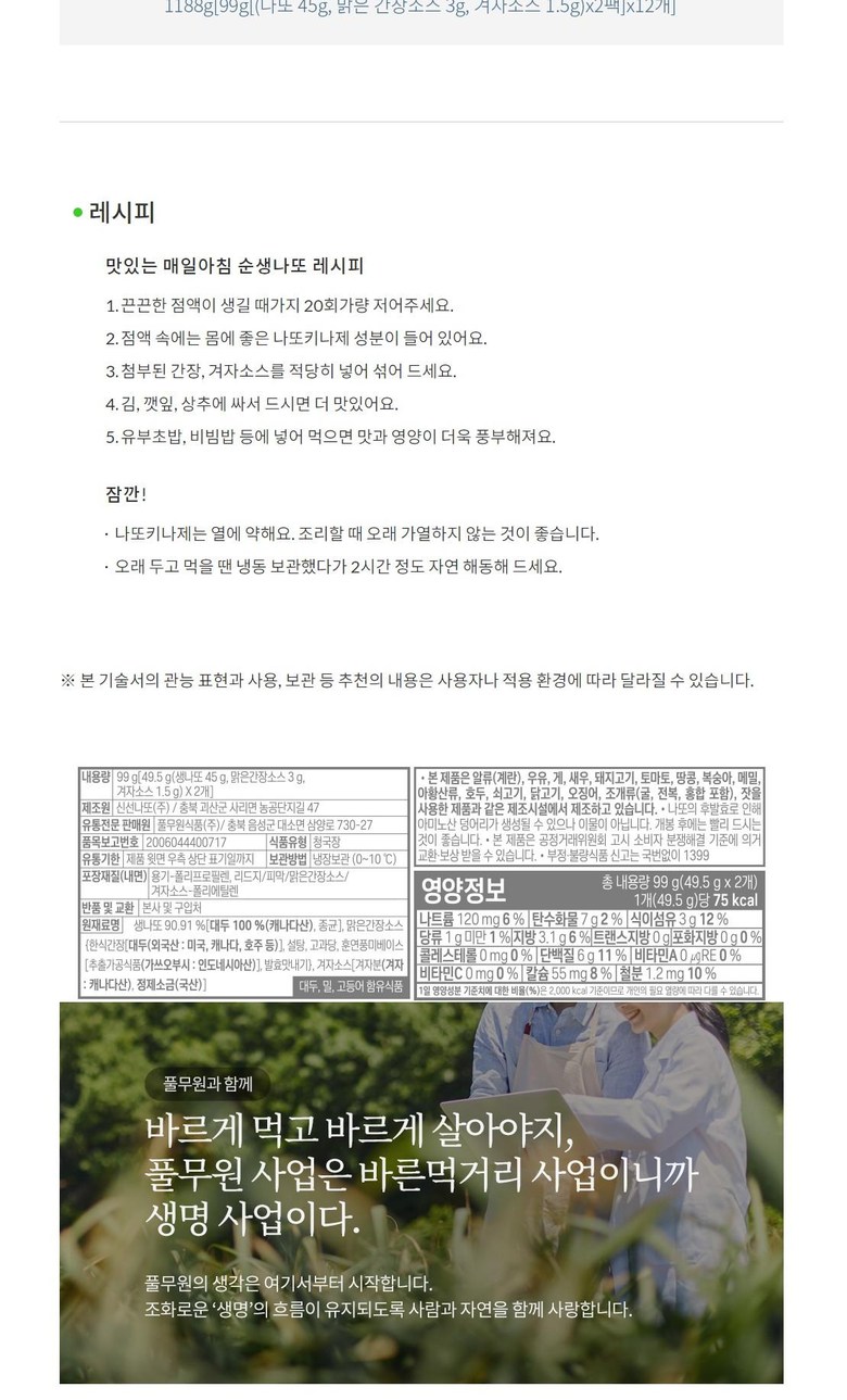 | 포장단위별 내용물의 용량(중량), 수량 | 상품 상세페이지 참조 | 원재료명 및 함량 | 상품 상세페이지 참조 |