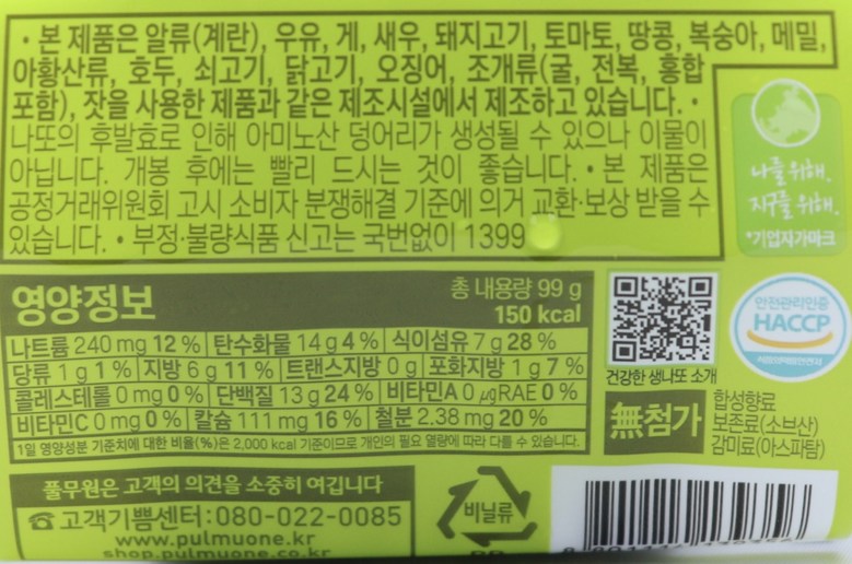 | 생산자 및 소재지 | 상품 상세페이지 참조 | 제조연월일, 소비기한 또는 품질유지기한 | 상품 상세페이지 참조 |