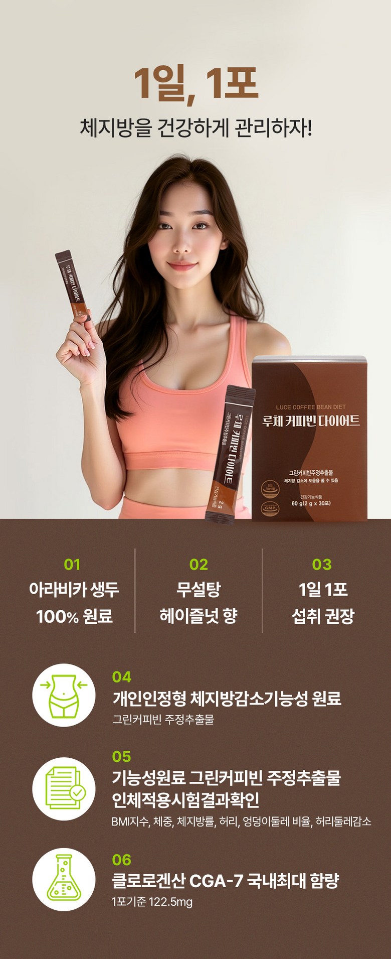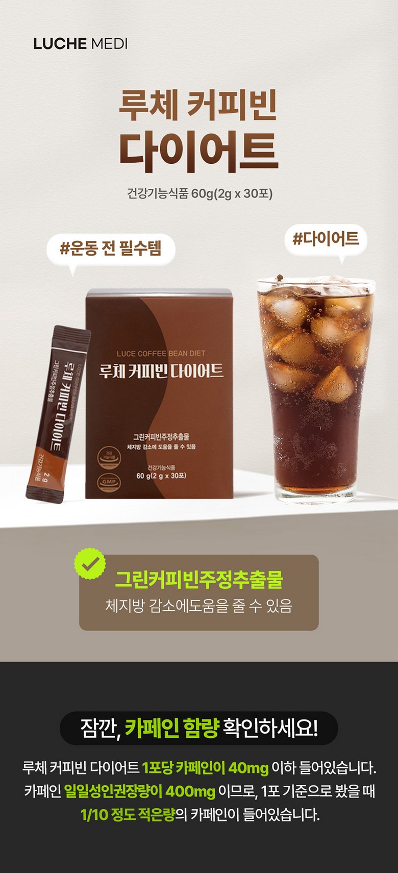 | 제품명 | 루체 그린 커피빈 다이어트 2개월분 60포 체지방 감소 도움 기능성원료 헤즐럿향 | 제조업소의 명칭과 소재지 | (주)엠에스바이오텍/충북 음성군 대소면 미산길25 |