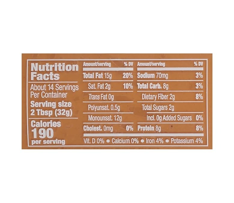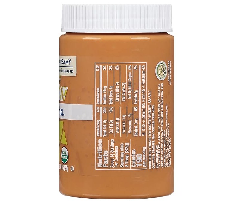 크리미한 피넛 버터입니다. 약간의 소금이 함유되었습니다. 1인분 당 200칼로리, 나트륨 65mg, 섬유소 3g, 단백질 8g 등을 제공합니다.