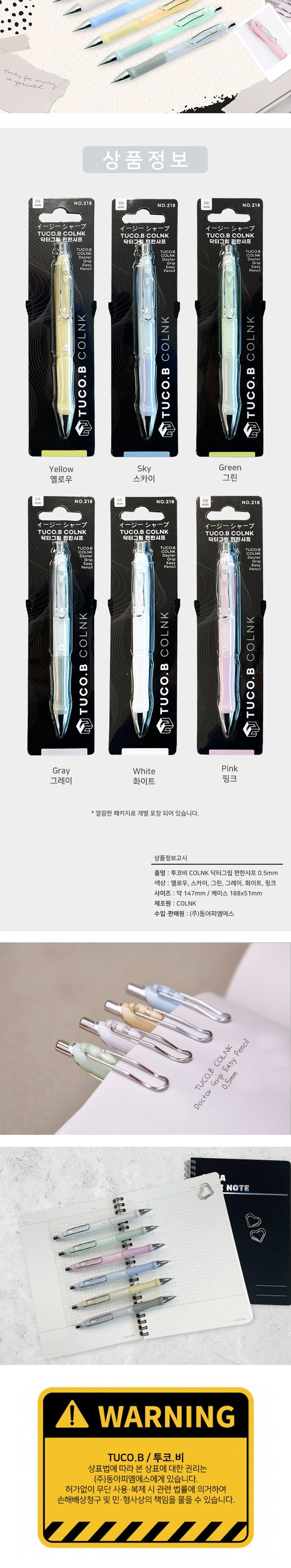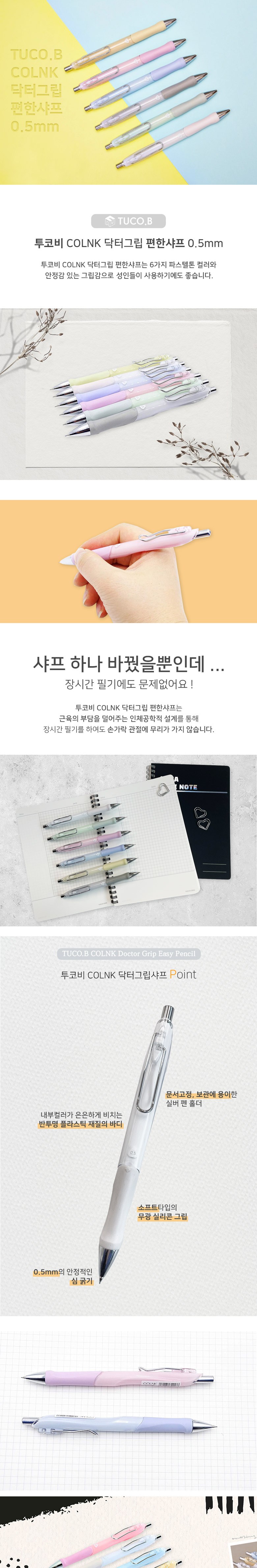 | 품명 및 모델명 | 투코비 COLNK 닥터그립 편한샤프 핑크 | 인증/허가 사항 | 해당없음(14세이상) |
