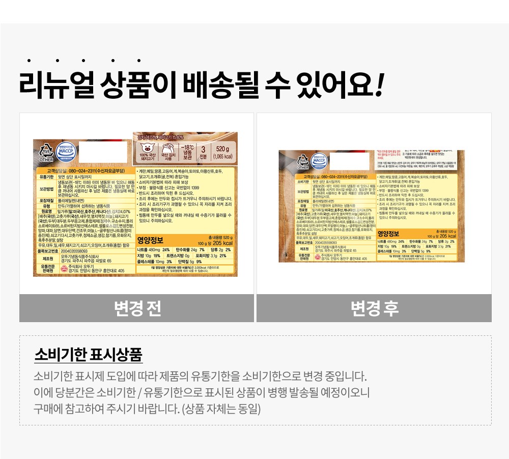 | 포장단위별 내용물의 용량(중량), 수량 | 520g x 2개 | 원재료명 및 함량 | 컨텐츠 참조 |