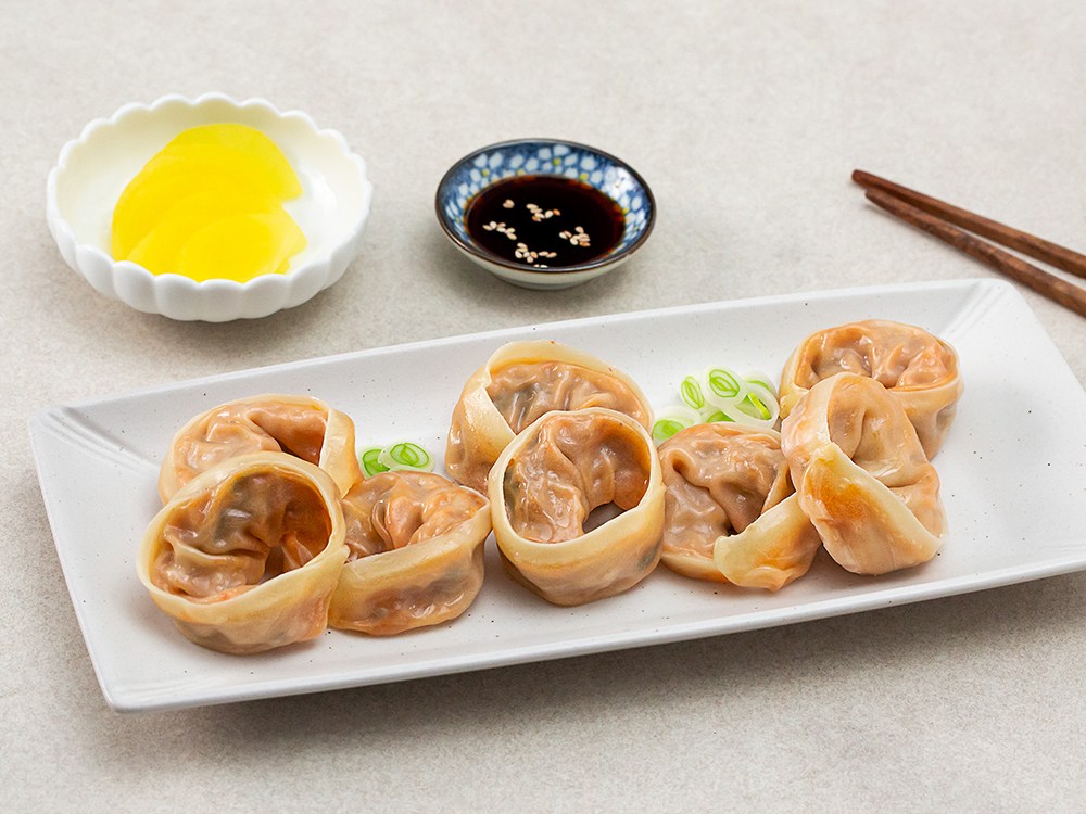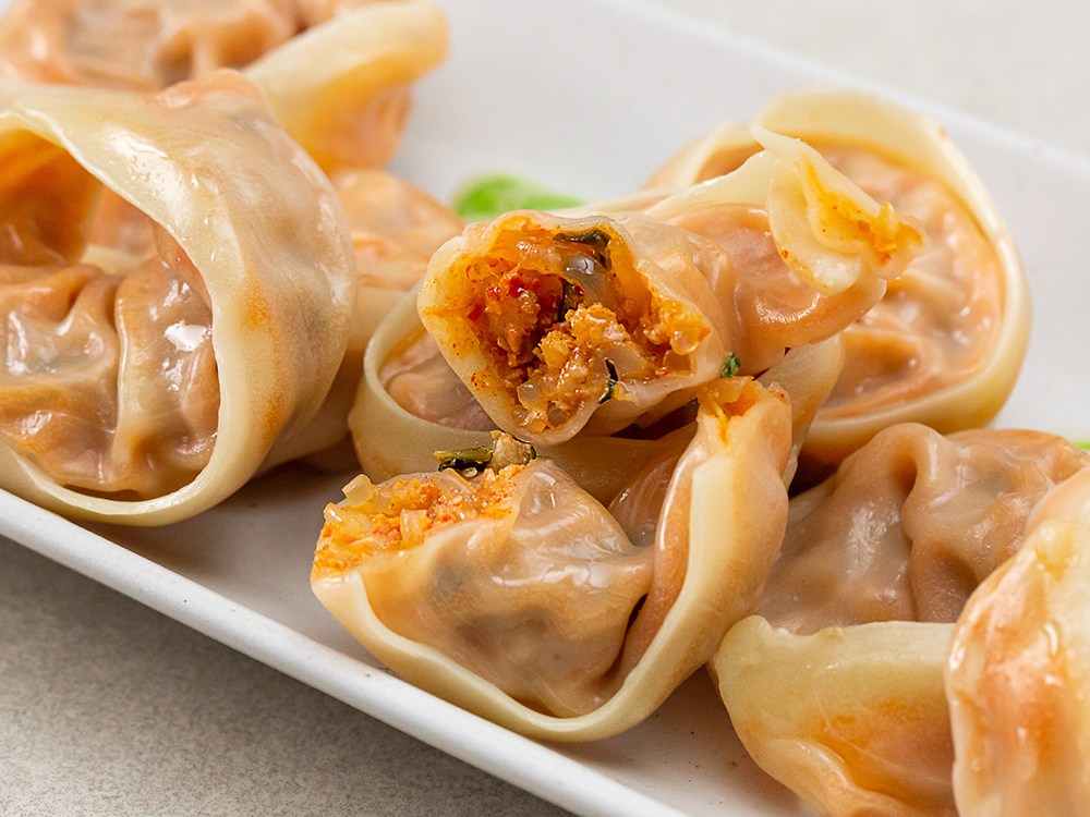 정갈하게 빚어낸 만두를 소개할게요. 쫄깃한 만두피 속에 돼지고기와 김치가 어우러져 풍성한 식감이 일품이죠. 한 입 베어 물면 촉촉한 육즙과 칼칼한 감칠맛이 입안 가득 퍼진답니다. 부드러운 찐만두, 뜨끈한 만둣국 등으로 조리해 맛있게 즐겨보세요