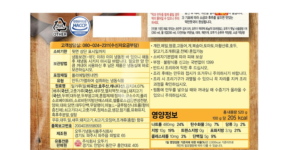 | 제품명 | 맛있는 손만두 김치 | 식품의 유형 | 컨텐츠 참조 |