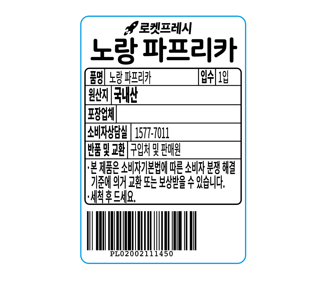 | 배송방법 | 신선/냉장/냉동 | 배송비 | 무료배송 - 로켓프레시 상품 중 15,000원 이상 구매 시 무료배송 - 해당 서비스 가능 지역에 한함 |