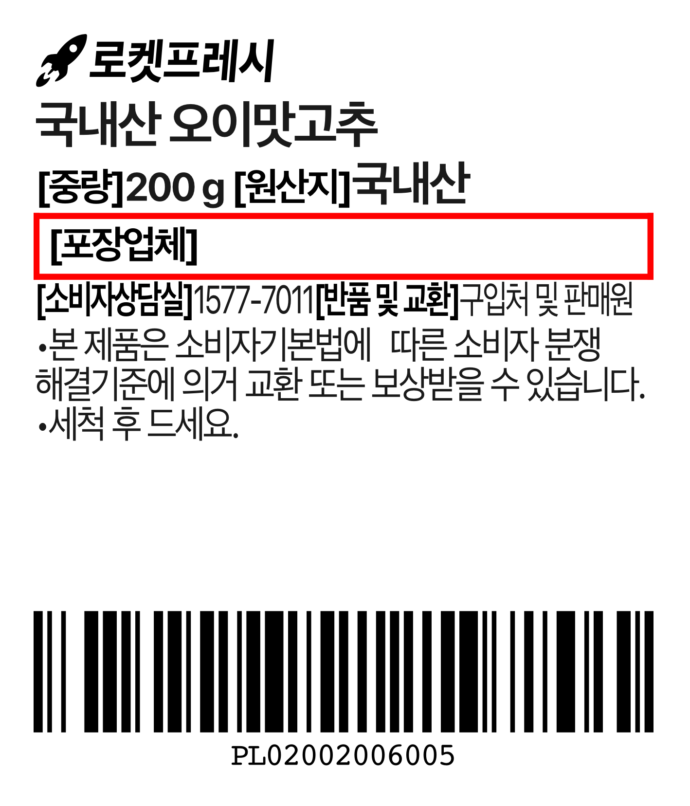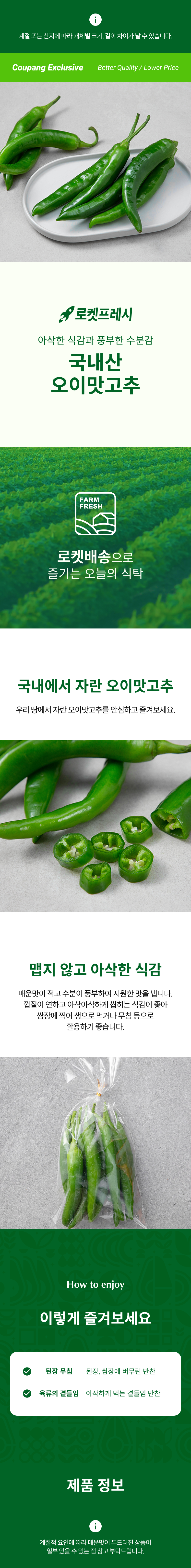 | 품목 또는 명칭 | 국내산 오이맛 고추 | 포장단위별 내용물의 용량(중량),수량,크기 | 200gx1개 |