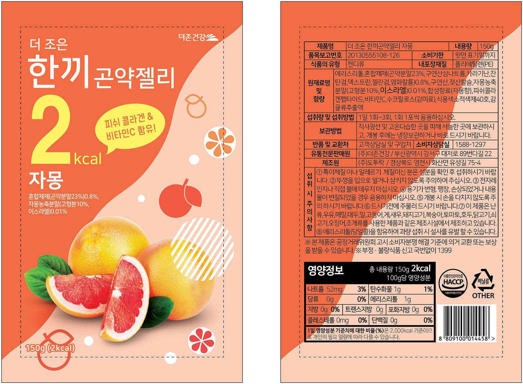 | 제품명 | 한끼곤약젤리 자몽 | 식품의 유형 | 혼합음료 |