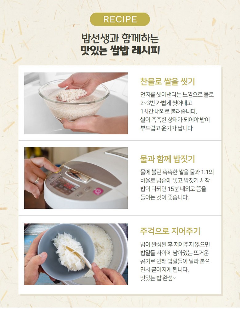 | 품목 또는 명칭 | 백미 | 포장단위별 내용물의 용량(중량),수량,크기 | 10kg |