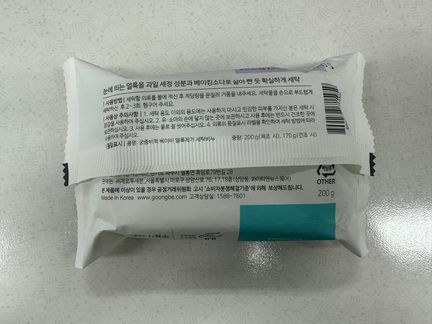 | 품명 및 모델명 | 궁중비책 베이비 얼룩제거 세탁비누 | 인증/허가 사항 | 해당없음 |