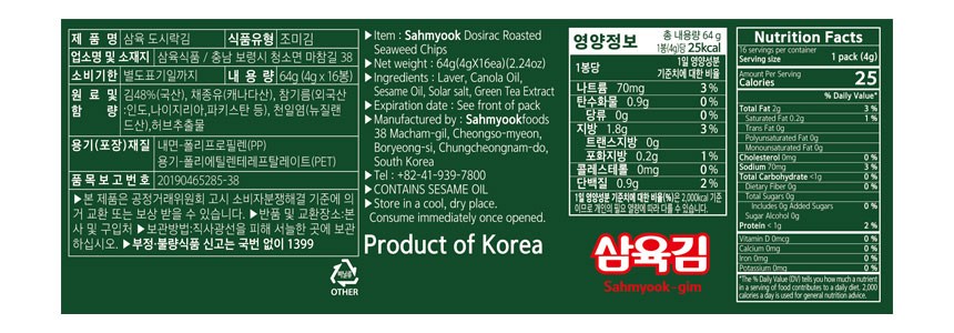 | 포장단위별 내용물의 용량(중량), 수량 | 4g x 1개입 x 64개 | 원재료명 및 함량 | 컨텐츠 참조 |