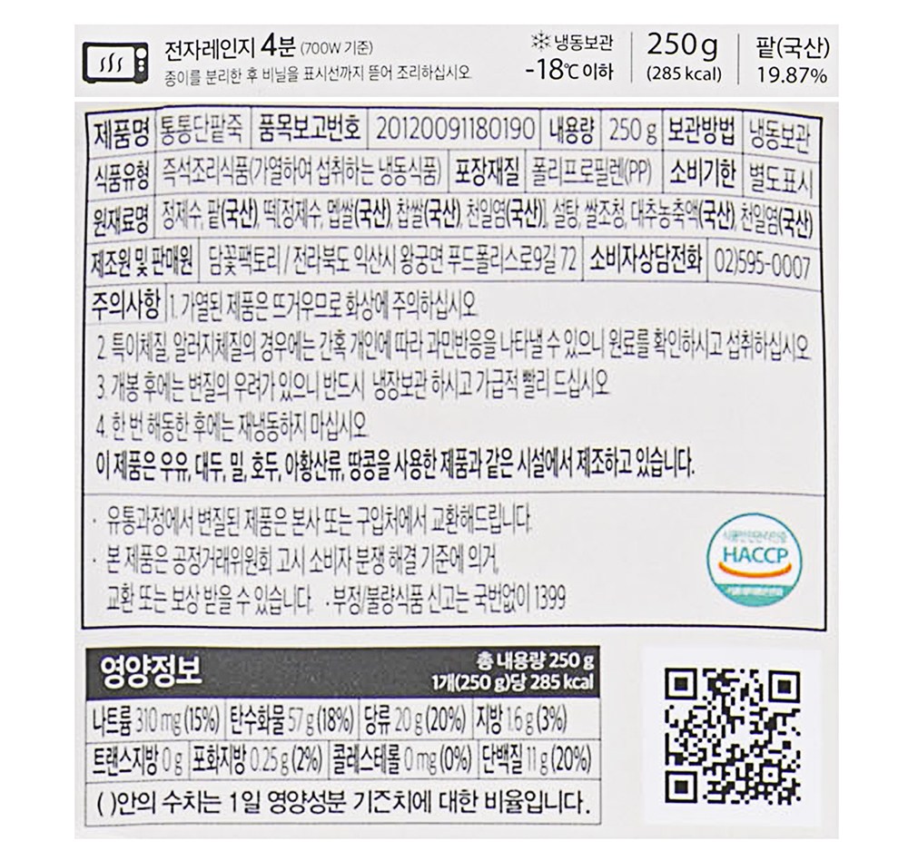 | 포장단위별 내용물의 용량(중량), 수량 | 250g x 4개,1개 | 원재료명 및 함량 | 컨텐츠 참조 |