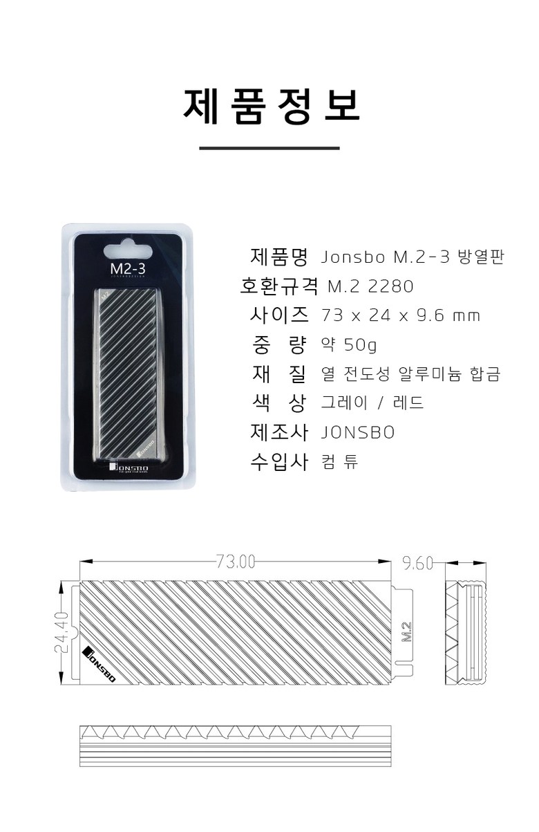 | 품명 및 모델명 | JONSBO M.2-3 방열판 | 인증/허가 사항 | 상품 상세페이지 참조 |