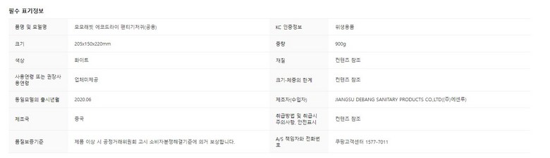 | 정격전압, 소비전력 | 상품 상세페이지 참조 | 출시년월 | 상품 상세페이지 참조 |