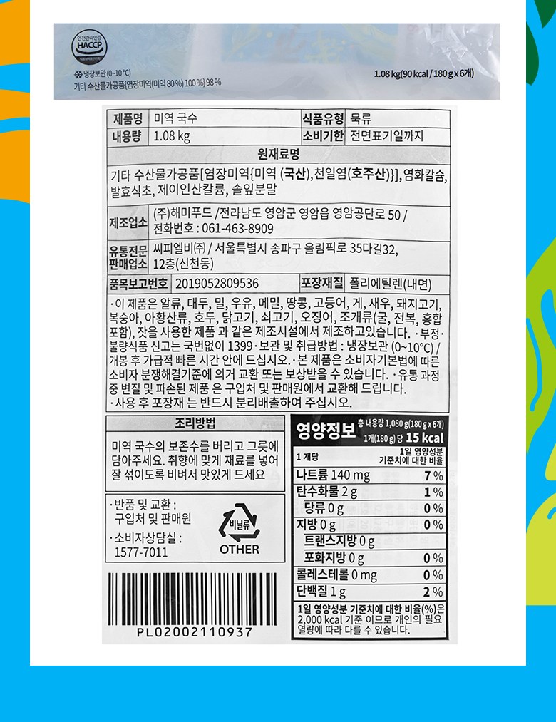 | 제품명 | 곰곰 미역국수 | 식품의 유형 | 컨텐츠 참조 |