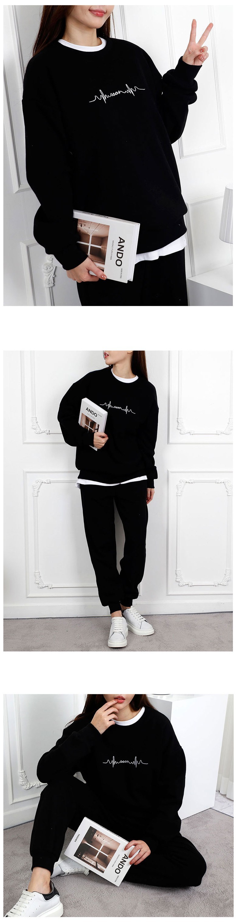 제일 편하고 가장 예쁜 핏의 심박수 자수 맨투맨+조거팬츠 세트 :)