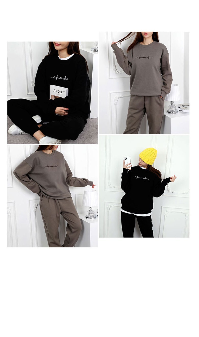 순이들 여성 심박수 자수 맨투맨 조거 기모 트레이닝세트