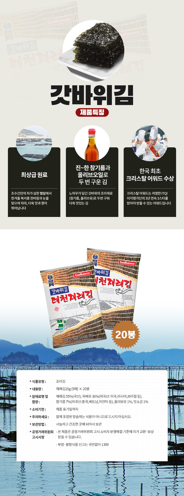 | 제조연월일, 소비기한 또는 품질유지기한 | 상품 상세페이지 참조 | 세부 품목군별 표시사항 | 상품 상세페이지 참조 |