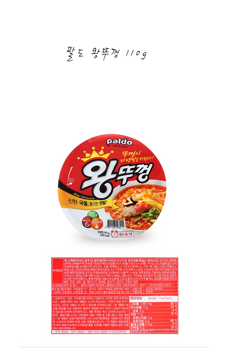 - 컵라면 용기 크기: 보통/큰컵 (81g 이상)
