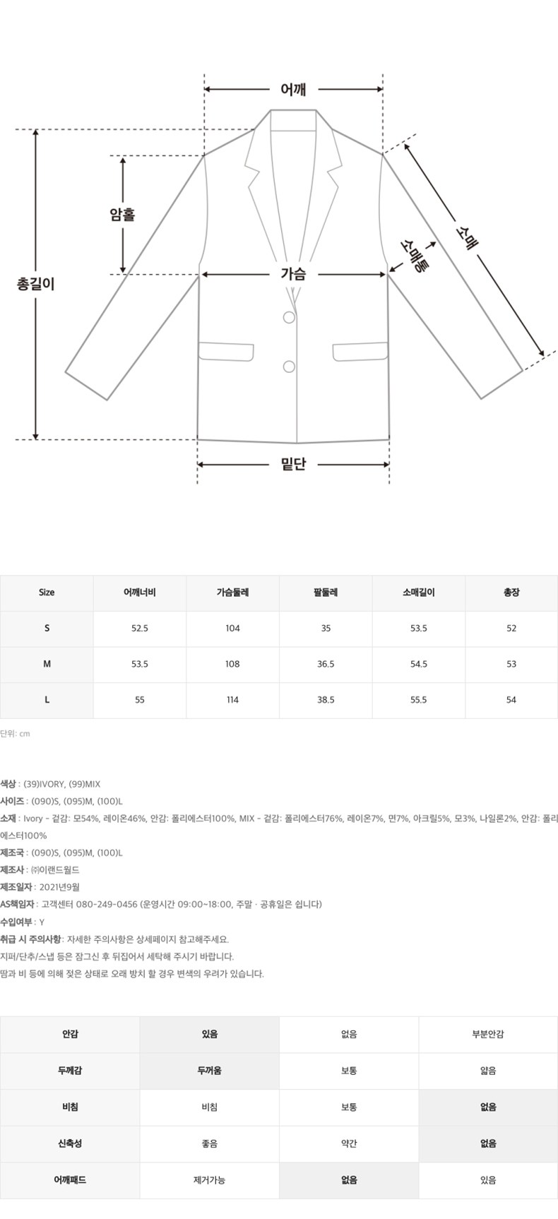 - 사용계절: 봄/가을용