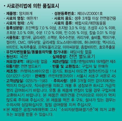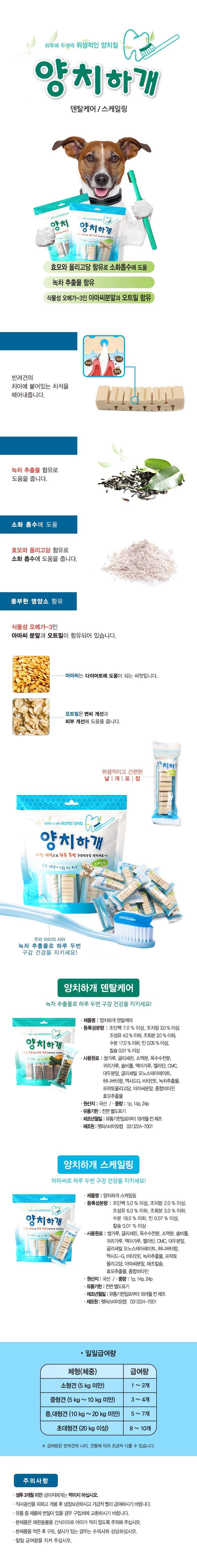 | 품명 및 모델명 | 양치하개 | 인증사항 | 사료관리법에 따른 성분등록번호 : 컨텐츠 참조 |