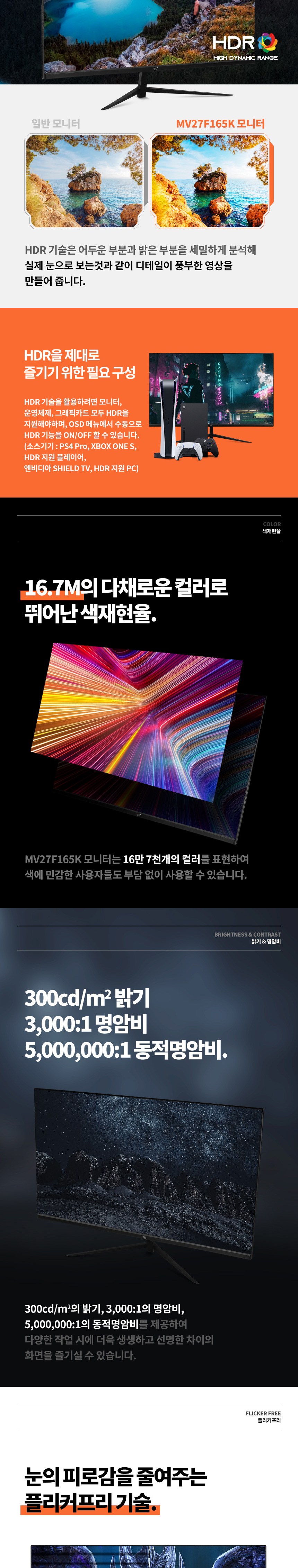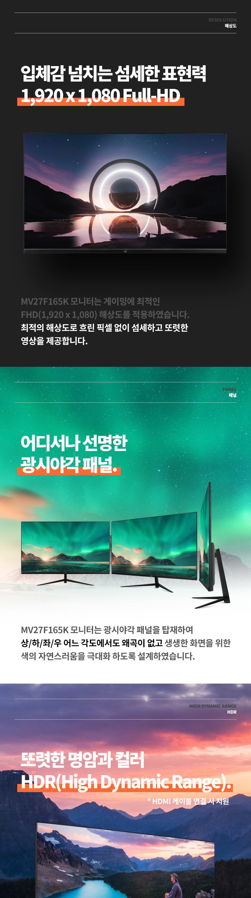 | 품명 및 모델명 | 어드밴스원 68.58cm FHD 보더리스 게이밍모니터 165hz / MV27F165K | KC 인증정보 | 본품: R-R-AHB-MV27F165K / 어댑터: DC-835-1204000, HU101053-22003A |