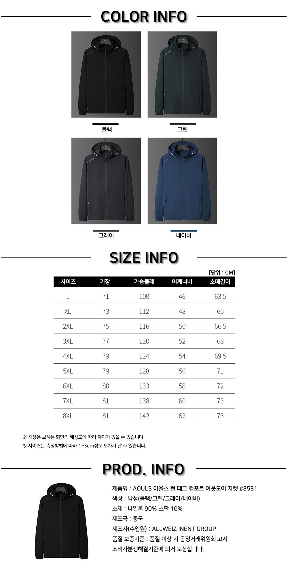 | 치수 | 컨텐츠 참조 | 제조자(수입자) | ALLWEIZ INENT/ALLWEIZ INENT |