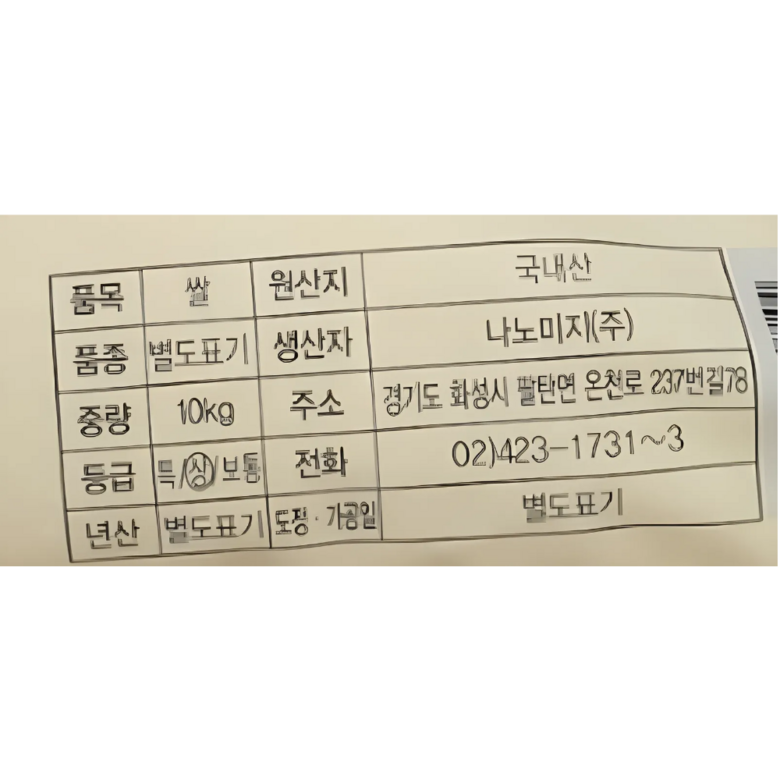 - 생산지역: 경기도