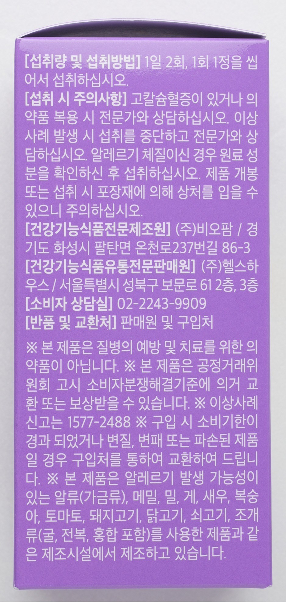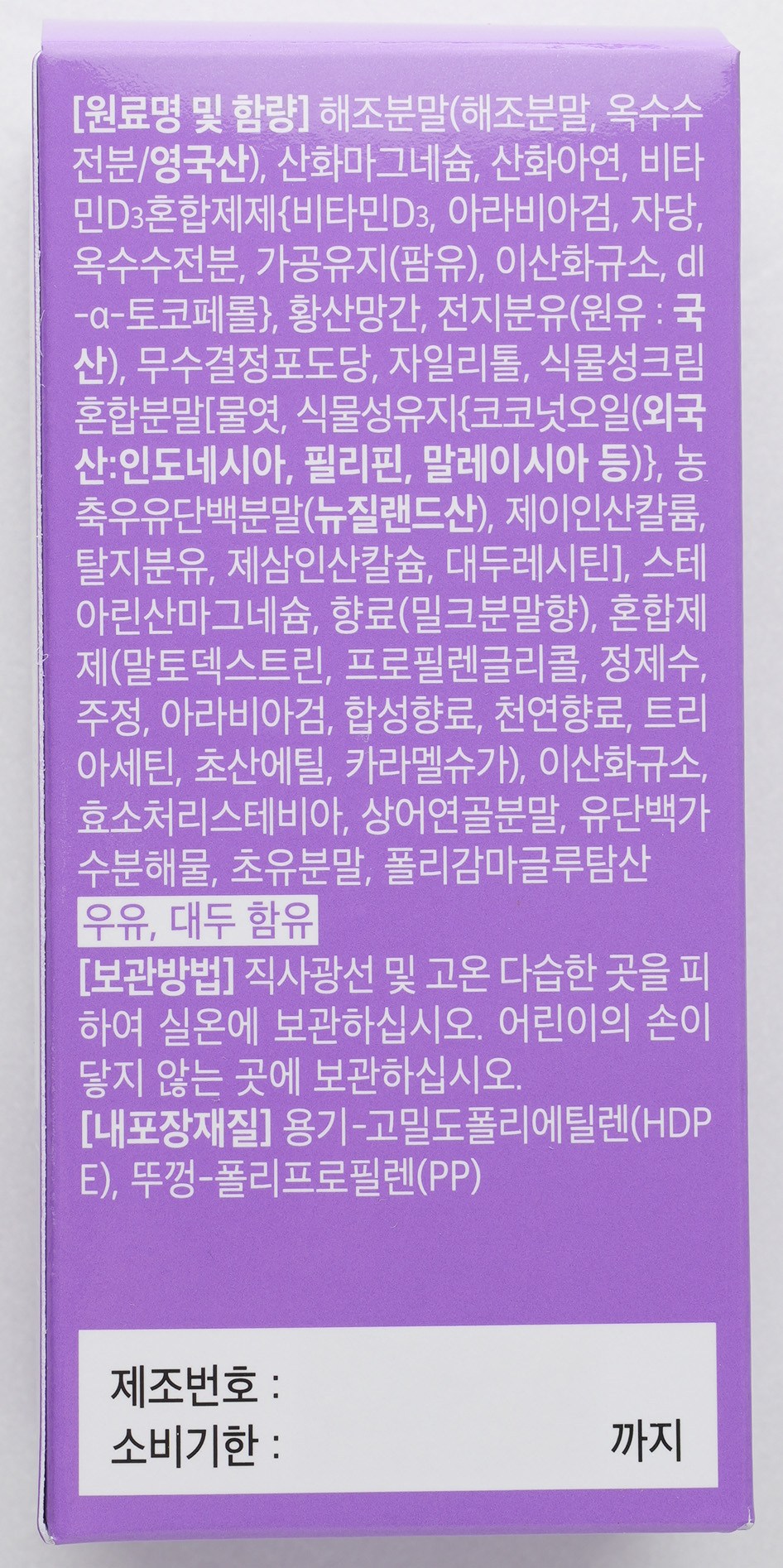 - 건강식품 사용대상: 유아/어린이
